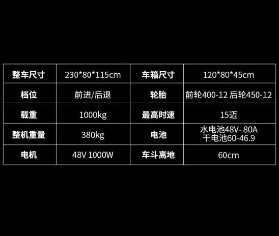 工程電動(dòng)車技術(shù)參數(shù)